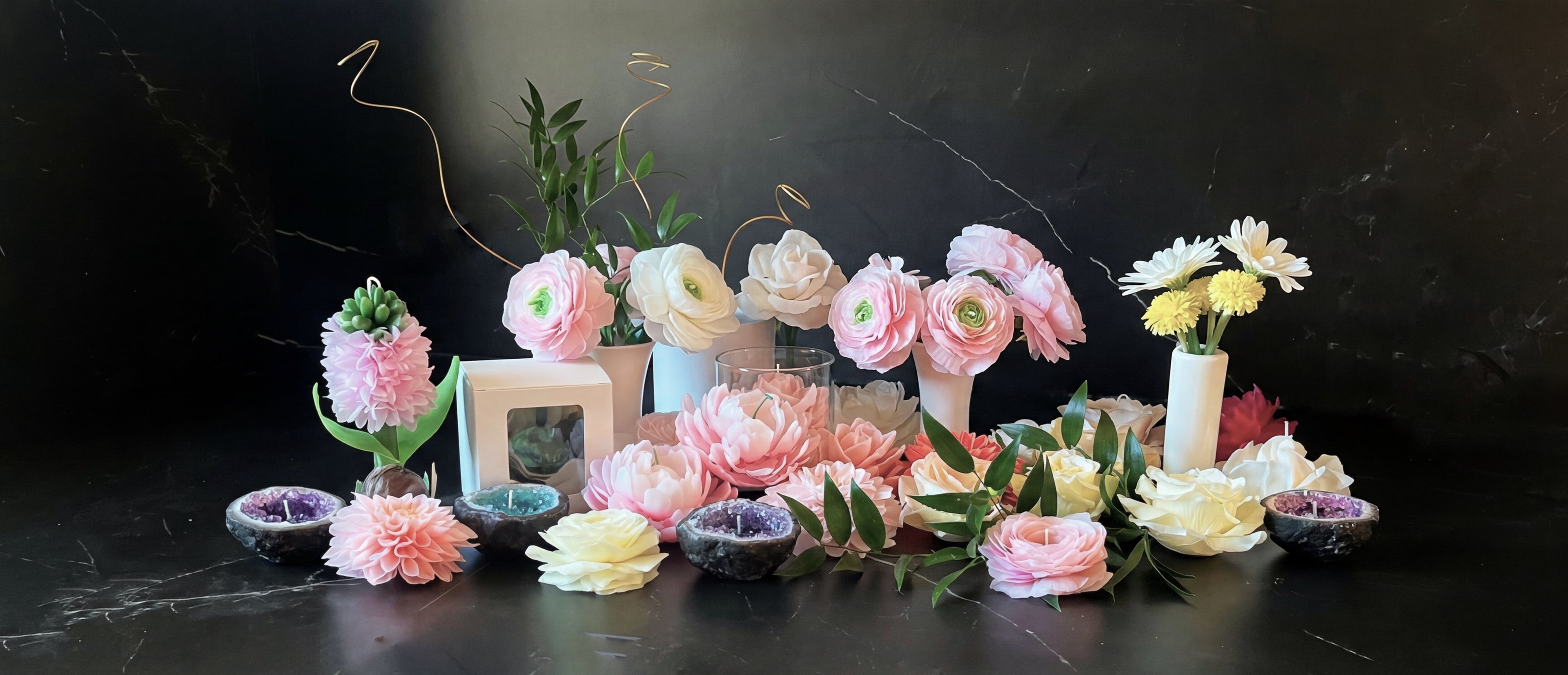 Handgemachte Blumenkerzen als Unikate: Rose, Peony und Dahlia – Blütenblatt für Blütenblatt...