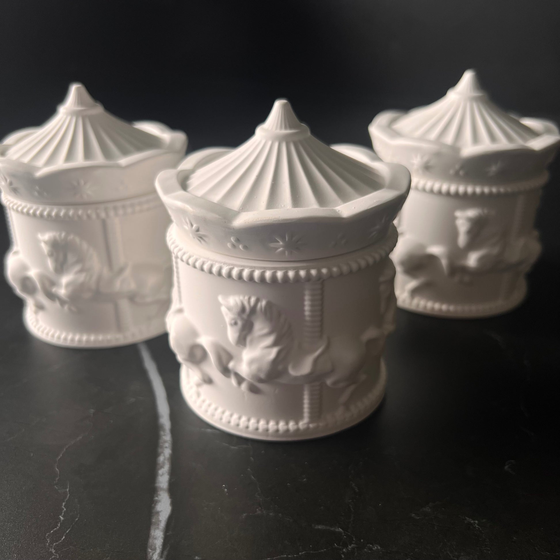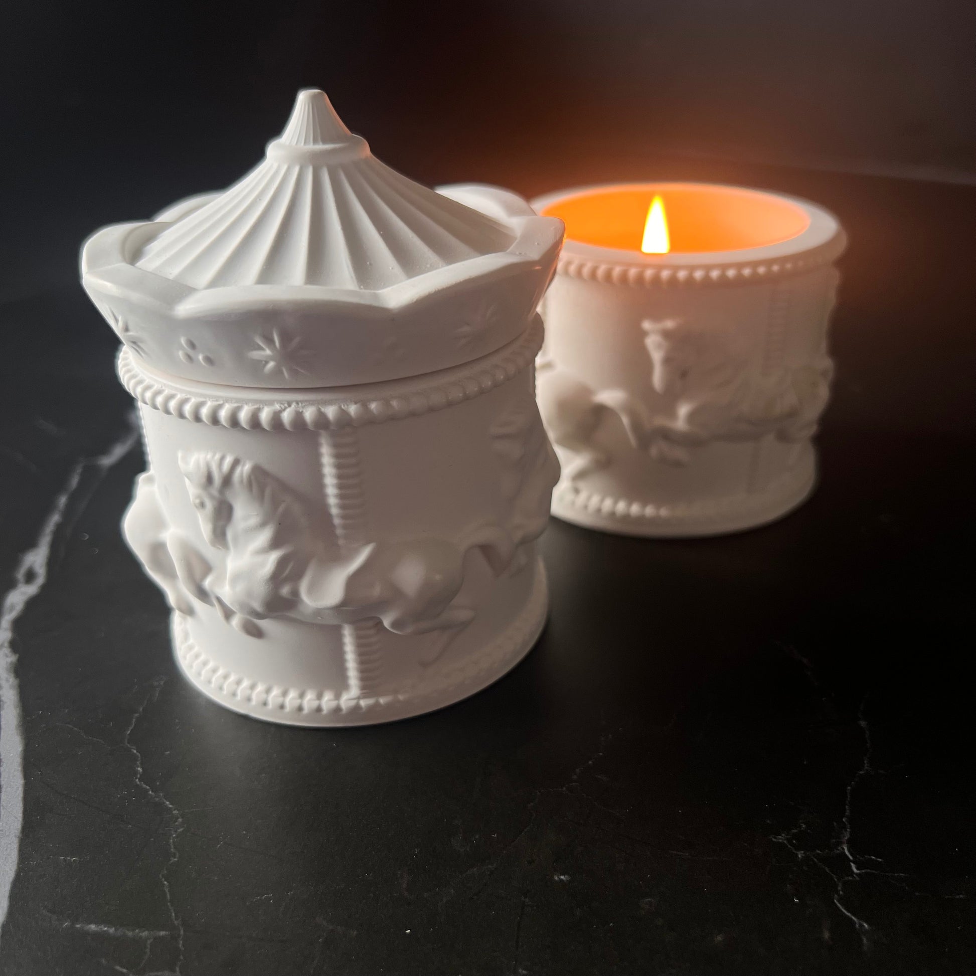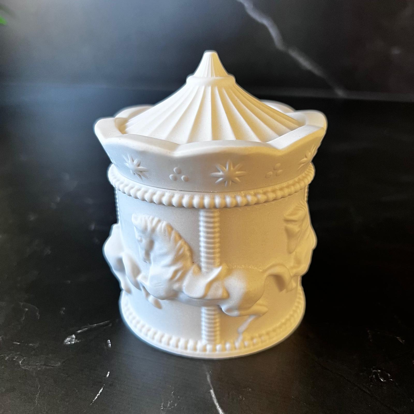 Der dekorative Karussell-Behälter kann nach dem Abbrennen wunderbar weiterverwendet werden – als Schmuckdose, Deko-Element oder besonderes Erinnerungsstück.