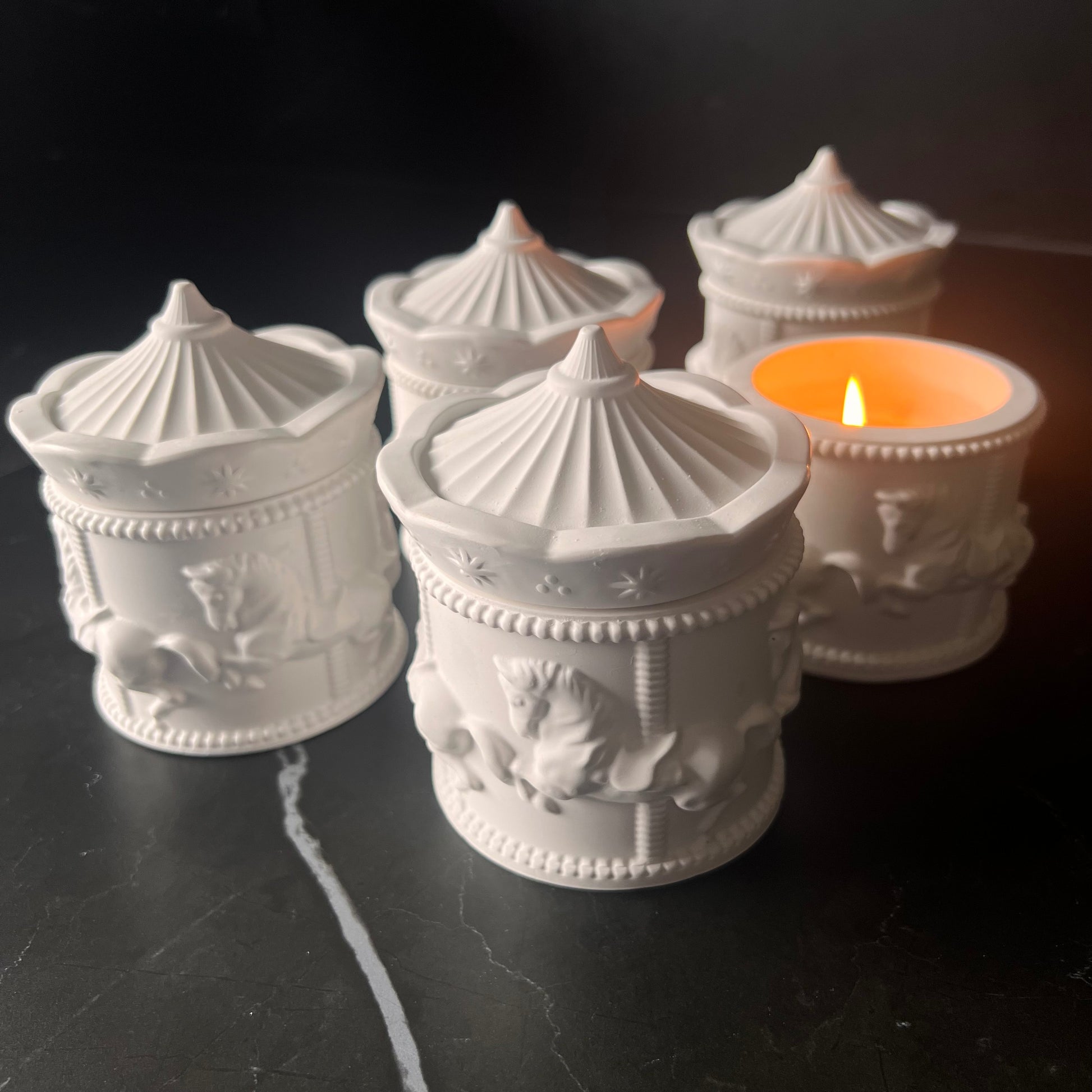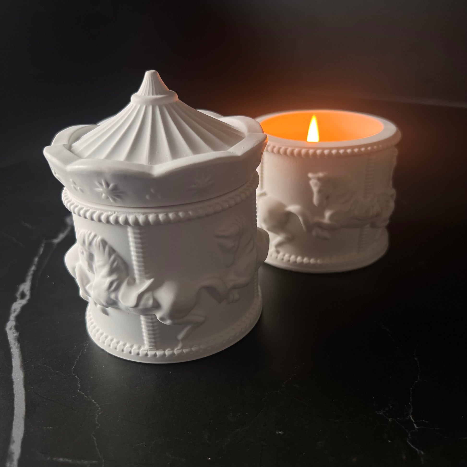Erlebe die Magie der Weihnachtszeit mit unserer exklusiven „Weihnachtskarussell“ Duftkerze – liebevoll gegossen in einen einzigartigen, handgefertigten Gipsbehälter in Form eines nostalgischen Karussells. Jede Kerze ist ein kleines Kunstwerk und wird in unserer Manufaktur einzeln gefertigt, um höchste Qualität und ein unverwechselbares Design sicherzustellen.